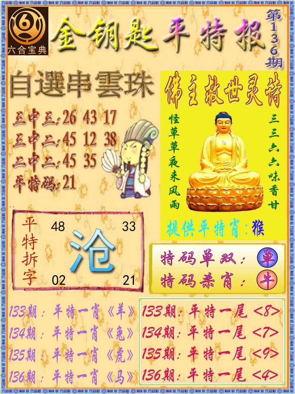 136期金钥匙平特报[图]