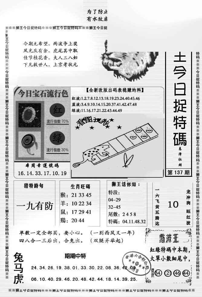 137期狮王今日抓特码[图]