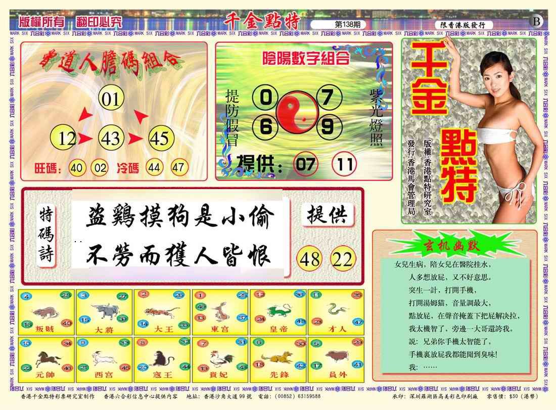 138期千金点特B(正版)[图]