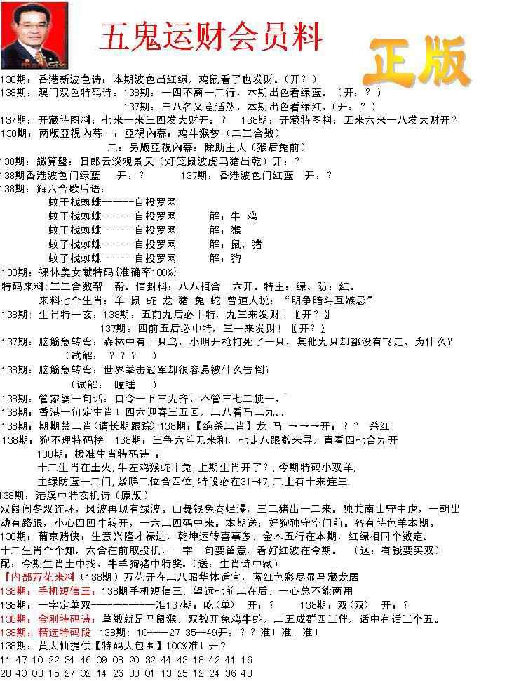 138期正版五鬼运财会员料[图]