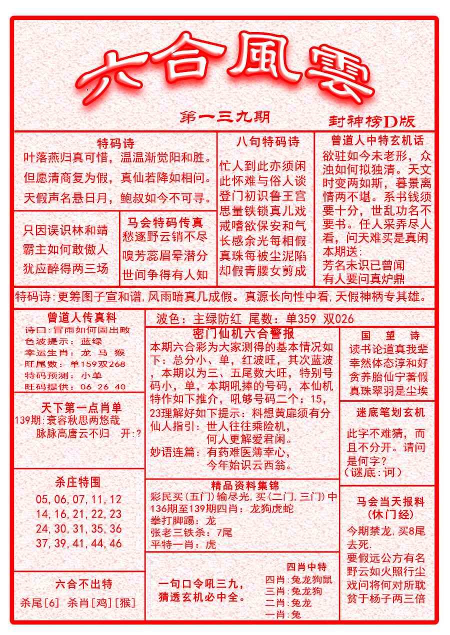 > 139期六合风云A面[图]
