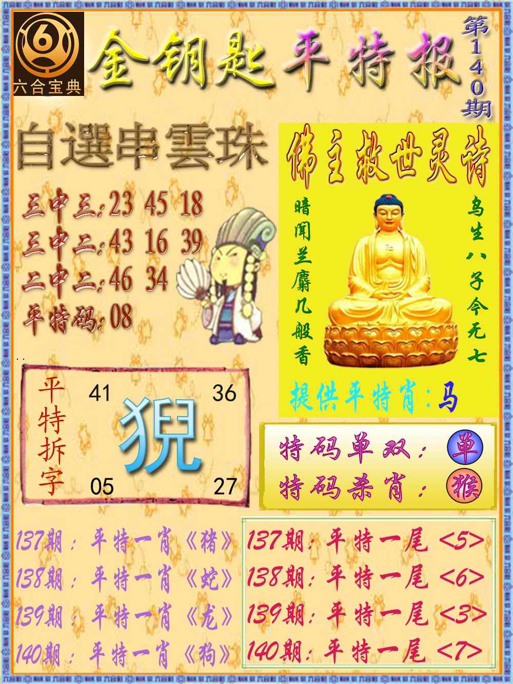 140期金钥匙平特报[图]