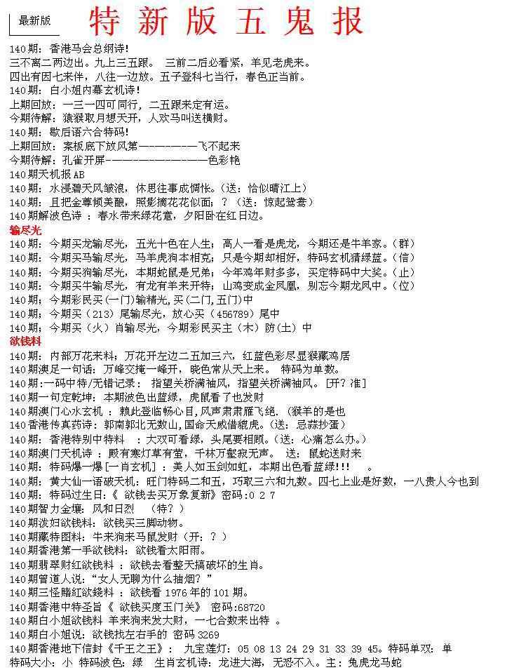 140期特新五鬼A[图] | 爱码网