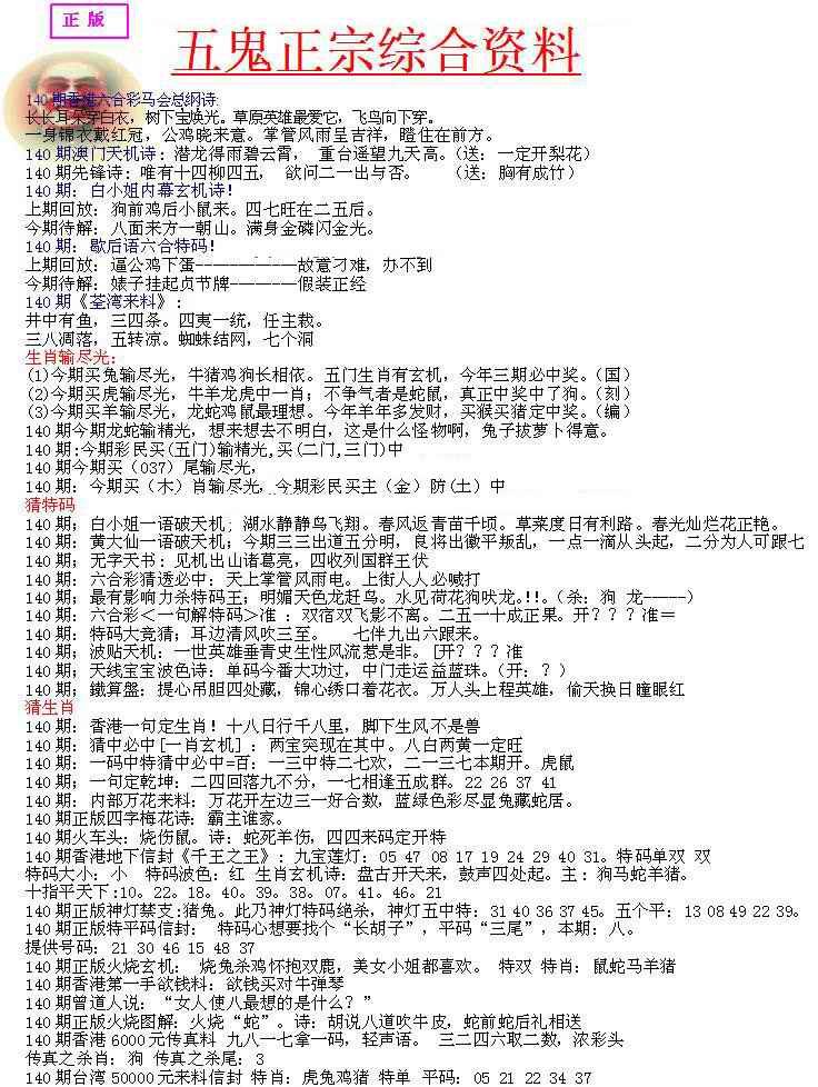 > 140期五鬼正宗会员综合资料A[图]