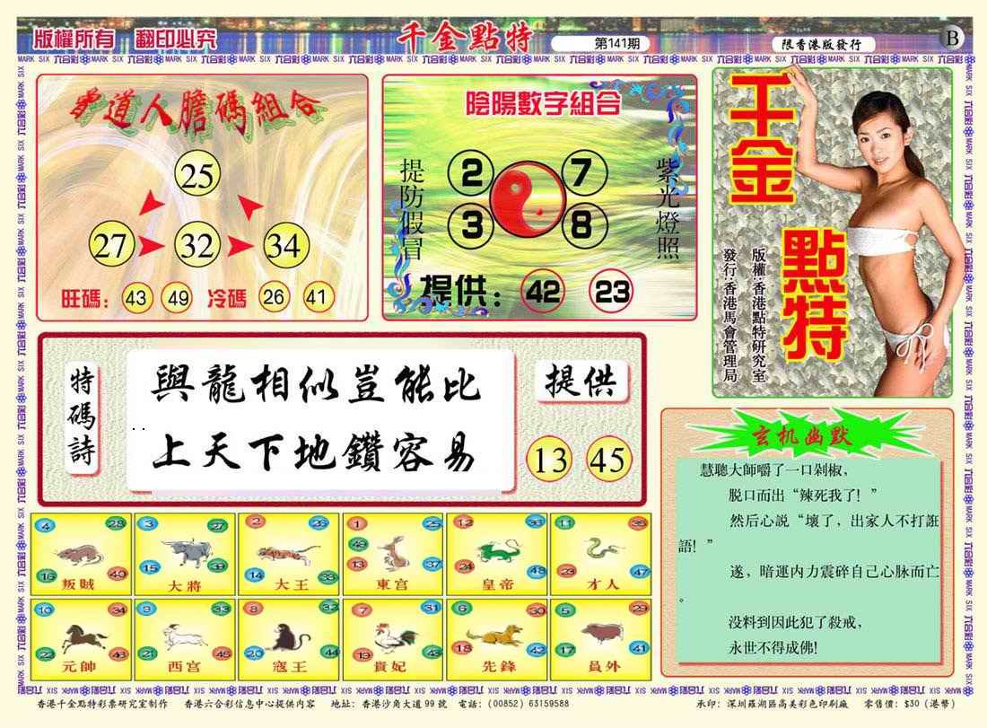 > 141期千金点特B(正版)[图]
