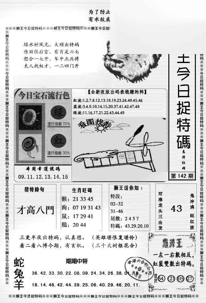 142期狮王今日抓特码[图]