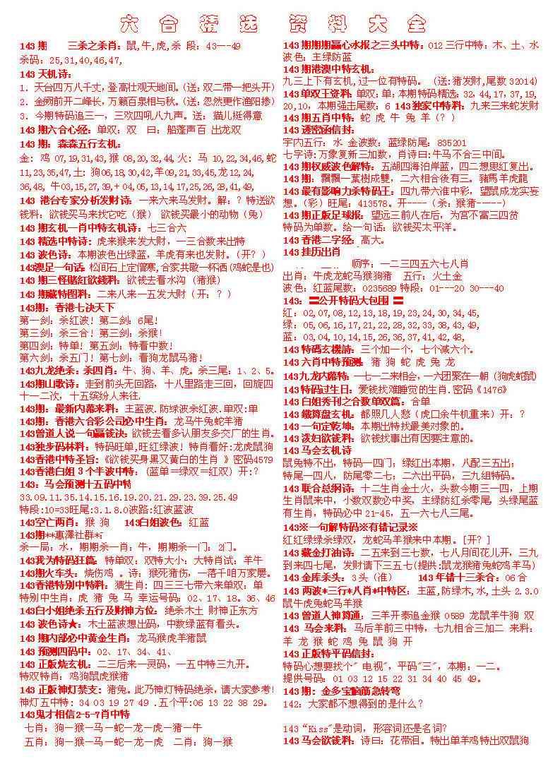 > 143期六合精选资料大全[图]