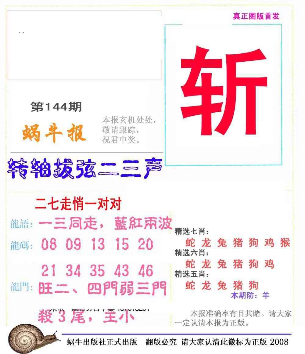 144期蜗牛彩报(正版)[图]