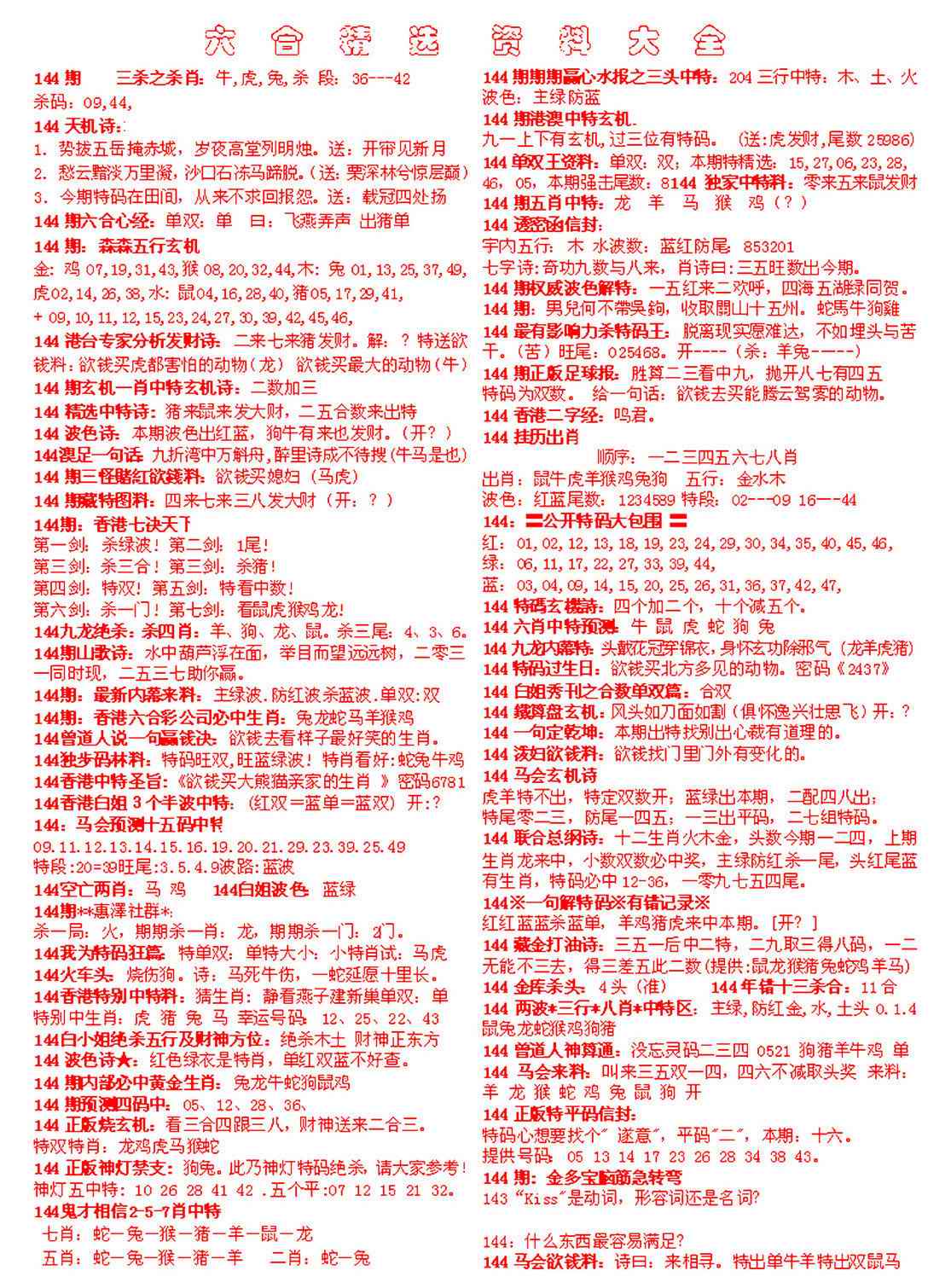 > 144期六合精选资料大全[图]
