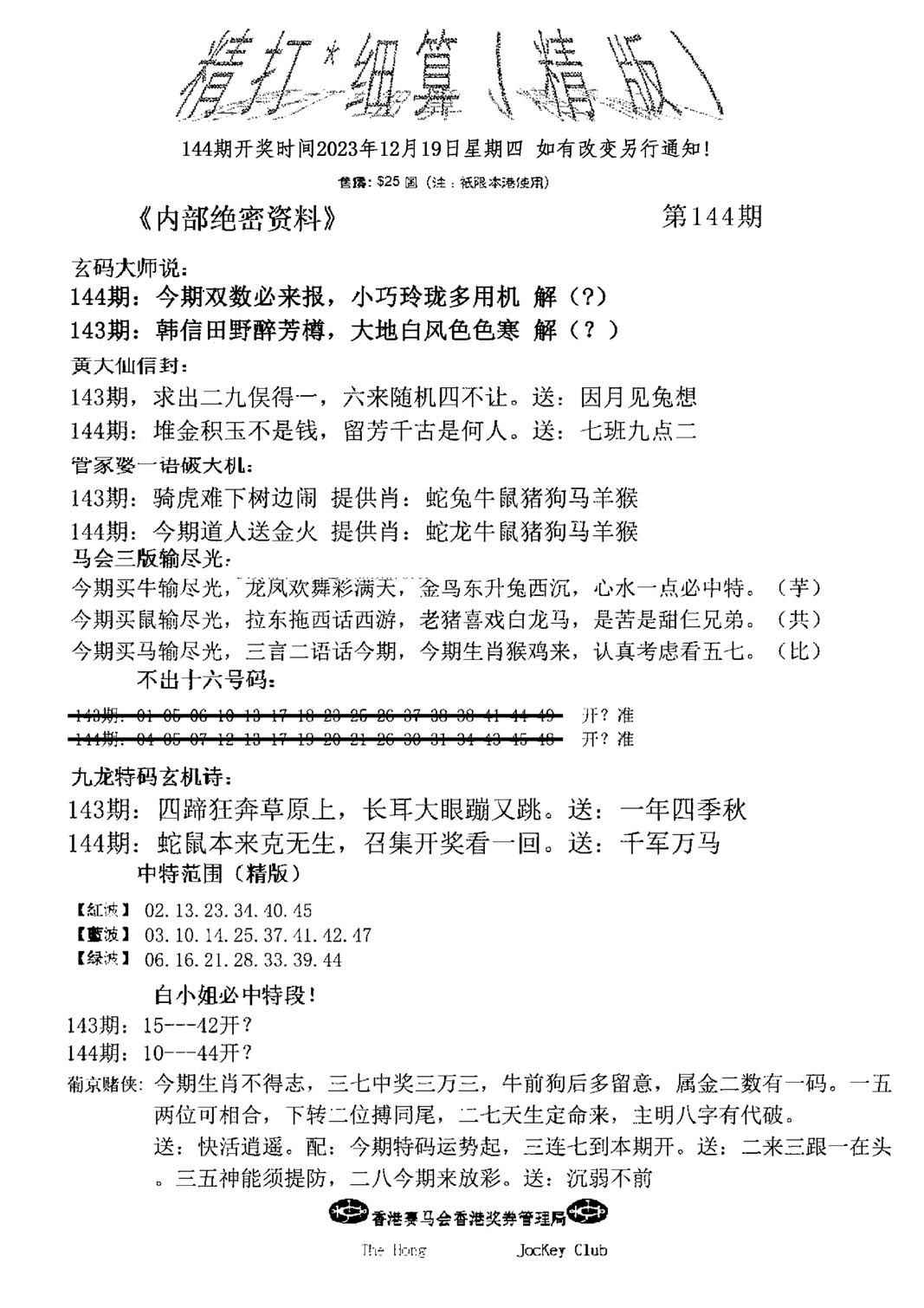 > 144期精大细算精版(新图)[图]