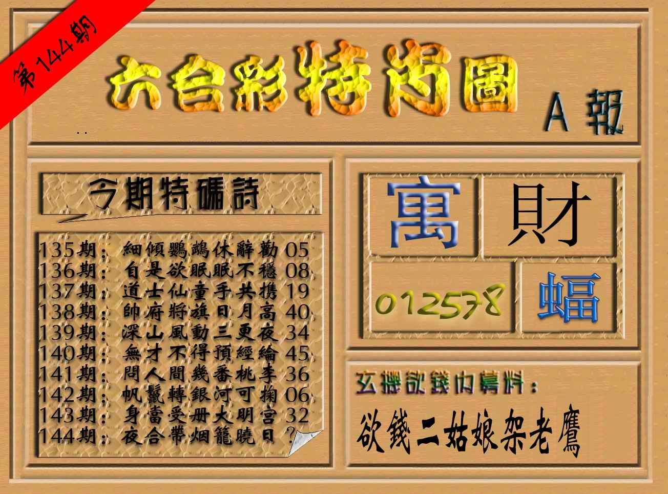 > 144期六合彩特肖图(A报)[图]