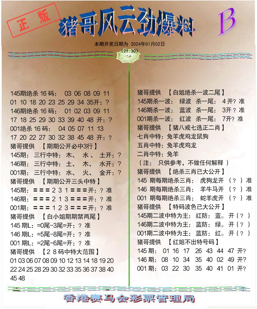 001期猪哥风云劲爆料B[图] | 爱码网